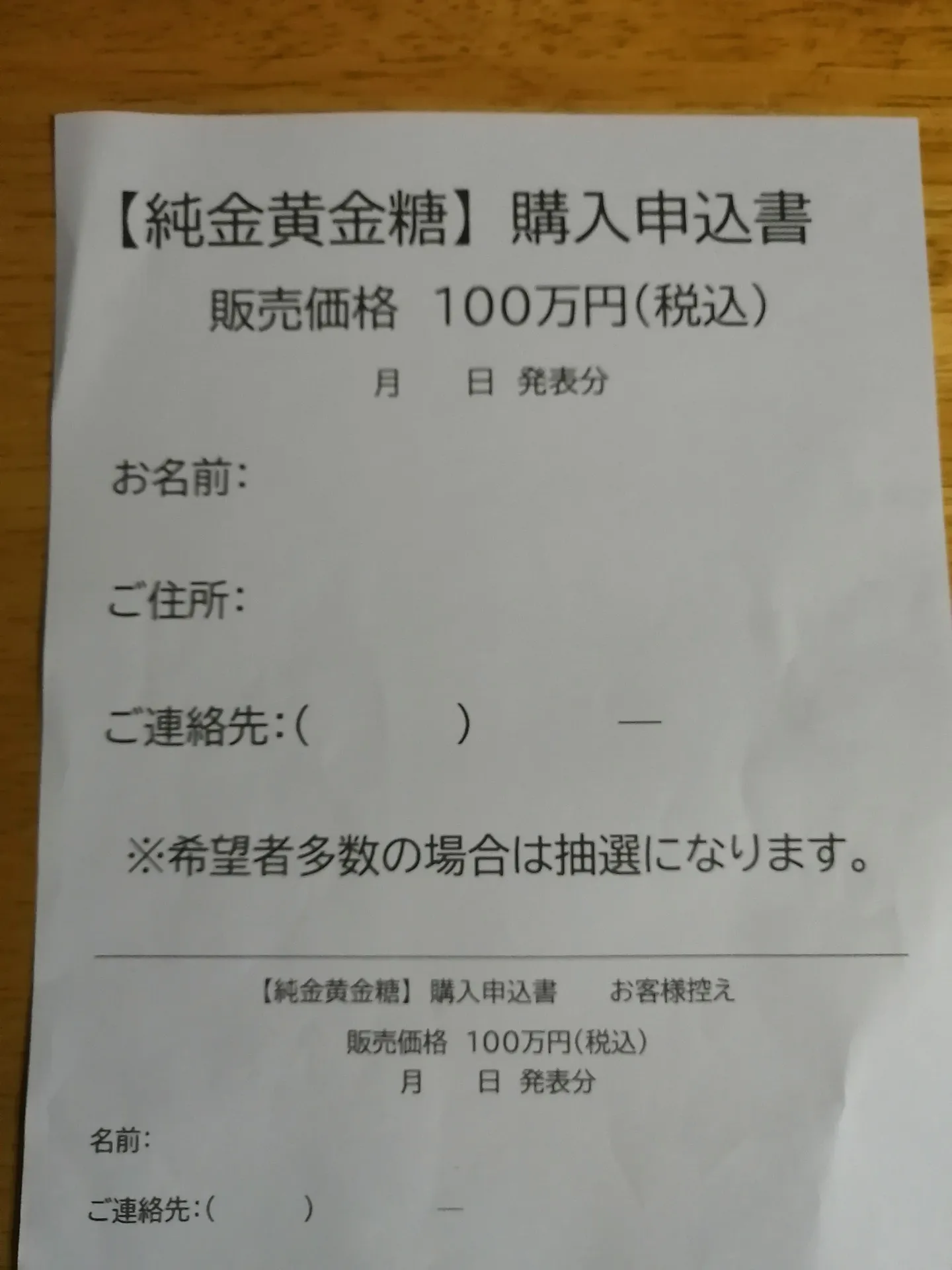 当選人数が3人だけの純金黄金糖の抽選に3万人超の応募が殺到しているという話だったのに。